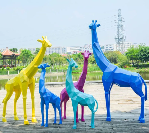 カスタムグラスファイバーキリン像大型動物鋼彫刻屋内パーク樹脂装飾用OEMアウトドア